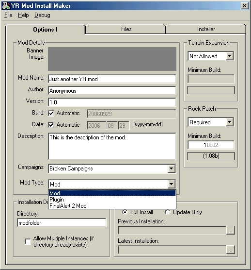 I am presently working on the Install-Maker program for the mod manager [I am planning on calling the mod manager "YR Launch Base" unless anyone has any better suggestions].