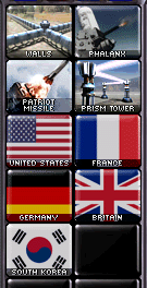 CameoPalette= with Prerequisite.Negative= (flags) System currently uses 0x0 -1 build limit until Ares research is introduced. Mod name - Red Ares Started - 11/12/10 Release - 25/12/10 (assuming I don't become ill or whatever) Version - 1.0 Will post on ModDB and relevant sites upon release. This mod and all coding will be avaliable for public usage with credits. Credits for this image attached go to Mig Eater (Patriot cameo and structure shp as well as Phalnax shp) Starkku (Patriot cameo, flag cameo) Uses Marshall LB tool and thus 0.1 of Ares but as new public releases become avaliable Red Ares will include new features. EDIT: Added firestorm wall graphics - credit Gangster. In Red Ares Firestorm special is a upgrade to a battle lab once you research a French alliance. Firestorm wall uses Ares prerequiste logic regarding upgrades.
