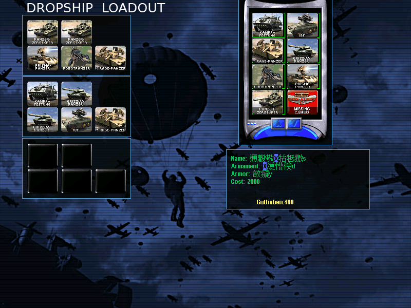 Whenever it got to the selection screen, the font was using foreign and unknown characters, also, whenever I clicked on a unit to insert them onto the dropship, nothing happened. I skipped the loadout and ended up with an IE.
